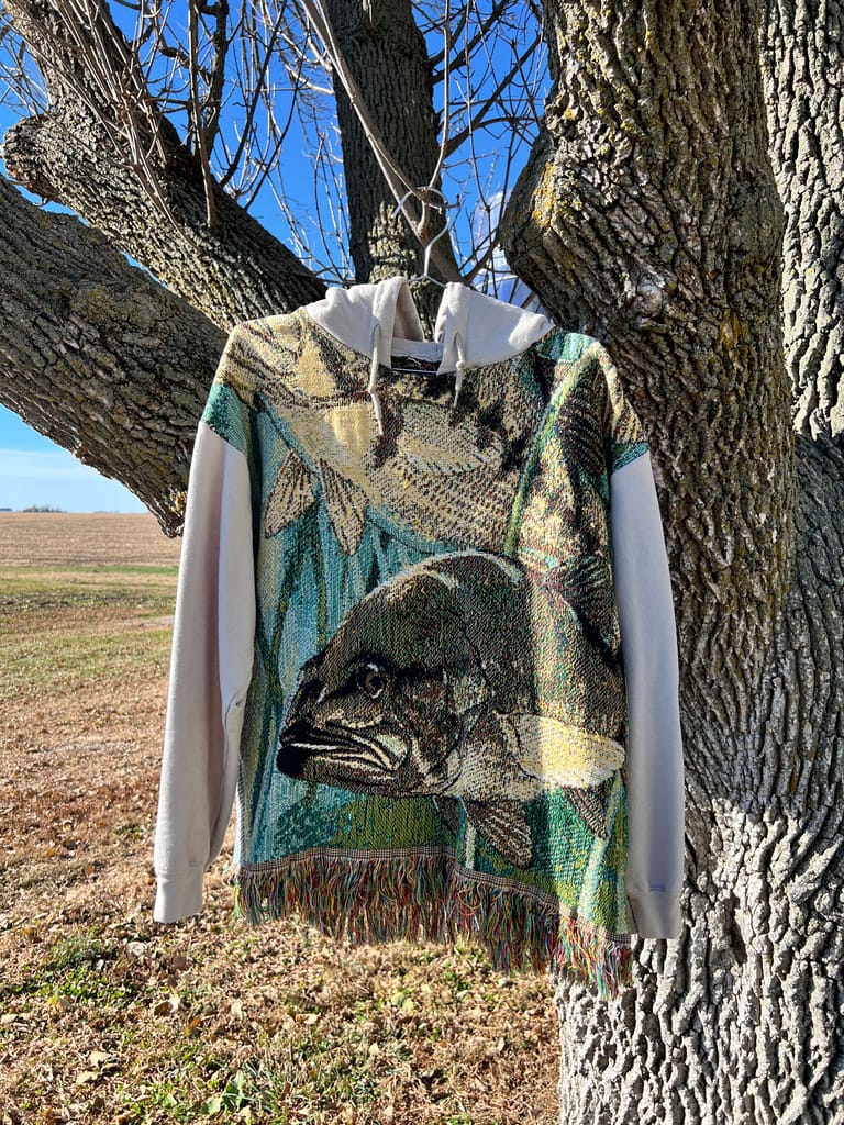 This throw blanket can be turned into a one-of-a-kind sweatshirt for you or someone you love! You'll choose what kind of sweatshirt, what color of sleeves, and other details to make sure it becomes your new favorite cozy piece just like the one below.